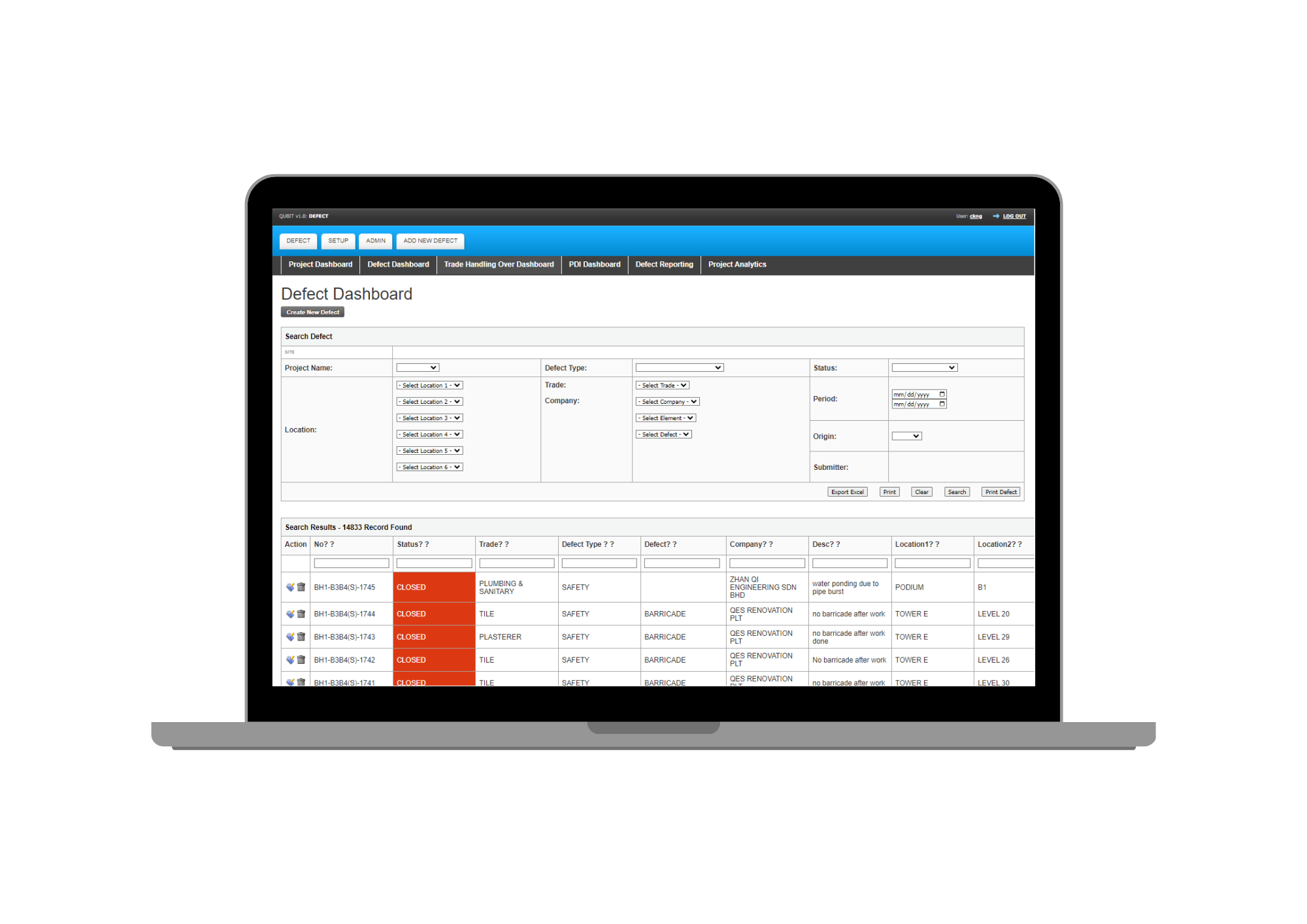 Defect management app for visual representation of defect cases on floorplans, and rectification tracking.